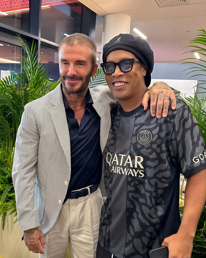 👑Hai huyền thoại! Ronaldinho đăng ảnh cùng Beckham: Rất vui được gặp anh trai
